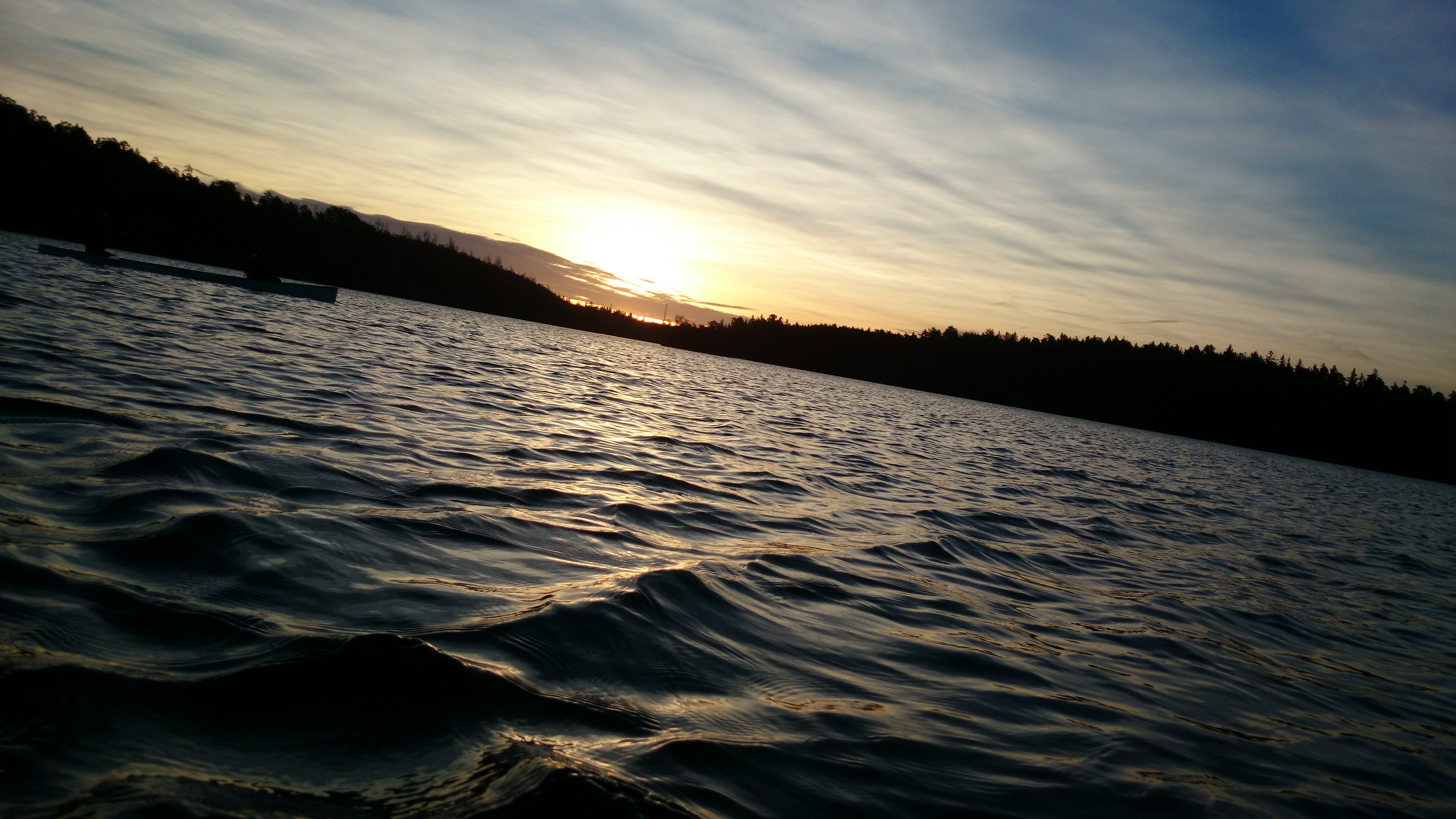 Det ljusnar lite när vi äter och vi kommer ut på paddlingen till en fantastisk soluppgång. Alla spår av löpningen är nu borta från benen och jag blir alldeles lycklig av hela situationen. Att paddla på Källtorpsjön är normalt bland det tråkigaste jag kan föreställa mig om jag fick välja träningspass, men mat och dryck, glada vänner, fint väder, en trots allt lyckad planering och en underbar soluppgång gav en ordentlig skjuts till välbefinnandet.