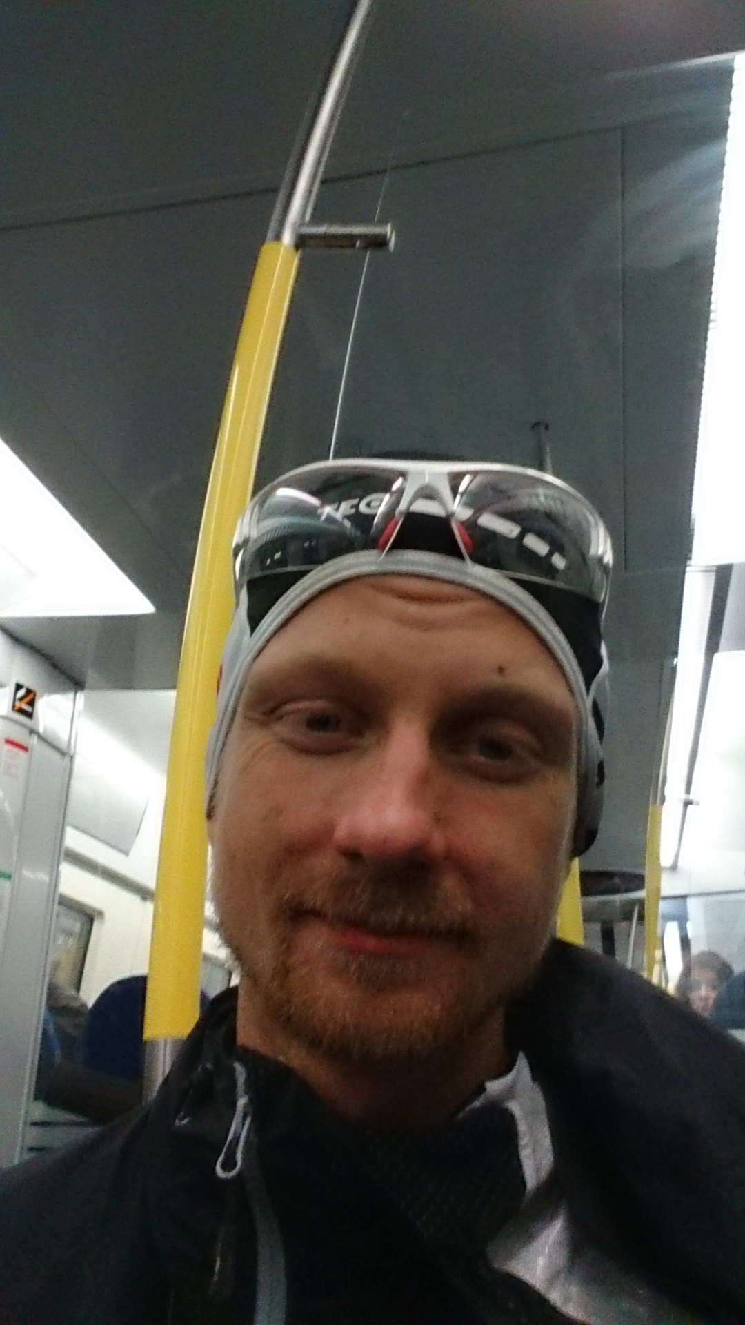 Jag landar igen på Bromma halv sju på kvällen och springer till taxin. Väl hemma drar jag på mig kläderna, pannlampan och ryggsäcken, pussar min fru adjö och springer till tåget för att hinna med samma pendel som de andra.När klockan närmar sig 21 börjar vi vår färd söderut från Arlanda. Ingen vet riktigt var vi ska, inte ens jag, men vi siktar söderut och efter en stund är vi inne på kartan över Stockholm. Alla vet var målet är och hur lång tid jag gissat att det skall ta. Ingen vet exakt var vi är, alla litar på mig för det är bara jag som planerat rutten. Efter tre timmar har vi kommit en bra bit, mer än halvvägs, men tempot har saktat ner ordentligt. Det är bra, för vi startade väldigt snabbt. Jag har väldigt ont i min vänstra axel och mina fötter. Efter fem timmar längtar jag verkligen efter att denna sträckan skall ta slut. Jag har jätteont, men har inga tankar på att bryta, jag ser bara väldigt mycket fram emot att få cykla istället. Med sex kilometer kvar gör vi ett planerat stopp hos Johan Andersson som förser oss med kaffe, macka, en cykel till Maria och en stor portion pepp. Jag hade det riktigt tungt uppför backarna till Andersson, men när vi lämnar den varma stugan känns det helt annorlunda. Massor av ny energi i både de fysiska och mentala depåerna, så vägen till växlingen känns ganska enkel.