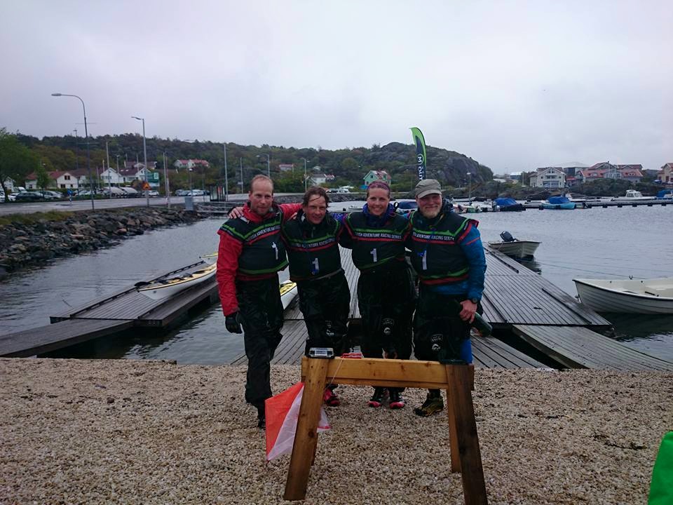 Sträcka 9 är en 13 mil lång cykling som beräknas ta sex och en halv timme. Vi väljer att köra en liten omväg ut från TA för att slippa stökig stig direkt och låta benen komma igång. Det känns oändligt långt till första kontrollen. Matts och Hanna börjar känna av sömntrollen och efter ungerfär två timmar beodrar kapten Erik sovstopp. Matts somnar som en överförfriskad semesterfirare direkt i vägkanten och Hanna likaså. 8 min senare sitter vi på cyklarna igen och det är rätt häftigt vad ett par minuters sömn kan göra. Vi trummar på och sträckan känns väldigt enformig, upp för en backe , ner för en backe ungefär tusen gånger. Allt ser likadant ut. Mikael som slarvat med energiintaget under natten och fokuserat 100% på att hitta rätt efter navigeringsmissen börjar bli rejält sliten i benen. Efter ett par timmar börjar det regna rejält, så alla drar på sig goretex kläderna och trycker i sig extra energi. Cyklandet forsätter i timtal men till slut når vi TA1 där vi många timmar tidigare lämnat kajakerna för inlines. Tyvärr har vi missat repet med 40 min och måste nu paddla direkt tillbaka till Marstrand via en kontroll. Växlingen går rätt sakta. Vi paddlar ner till första och enda kontrollen i riktigt rolig medsjö, det blir till och med lite surf !