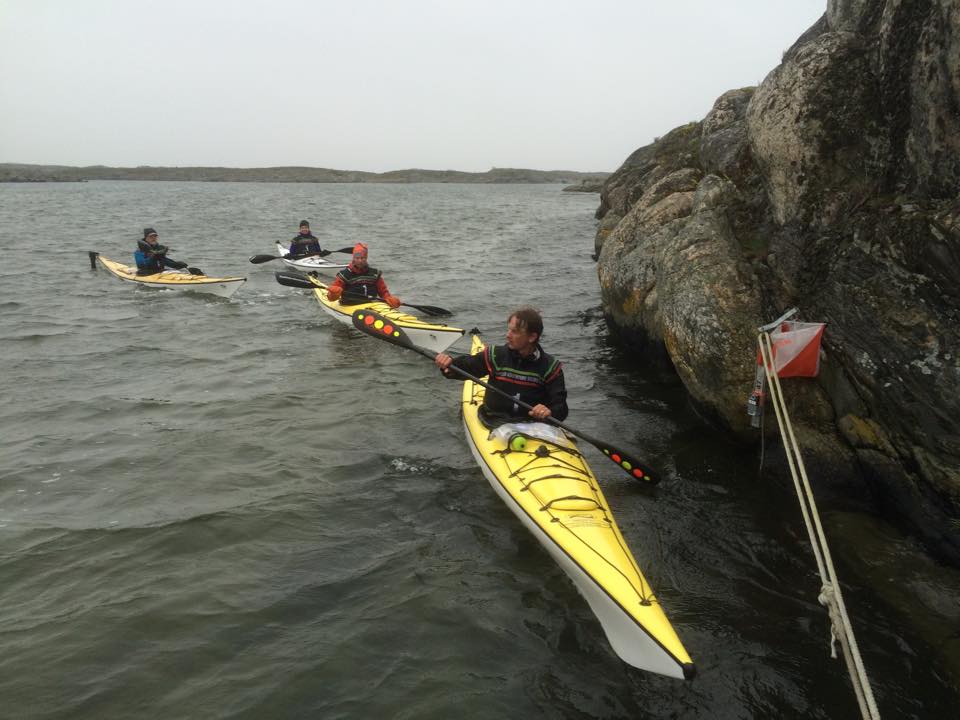 På väg ut ur sunden började vi leta efter varandras vågor, de var jättetydliga, men vi hittade inte flytet. Mikael som troligen är den starkaste paddlaren i laget hade plötsligt den långsammaste båten, men till sist hittade vi rätt och vi kunde hjälpas åt.